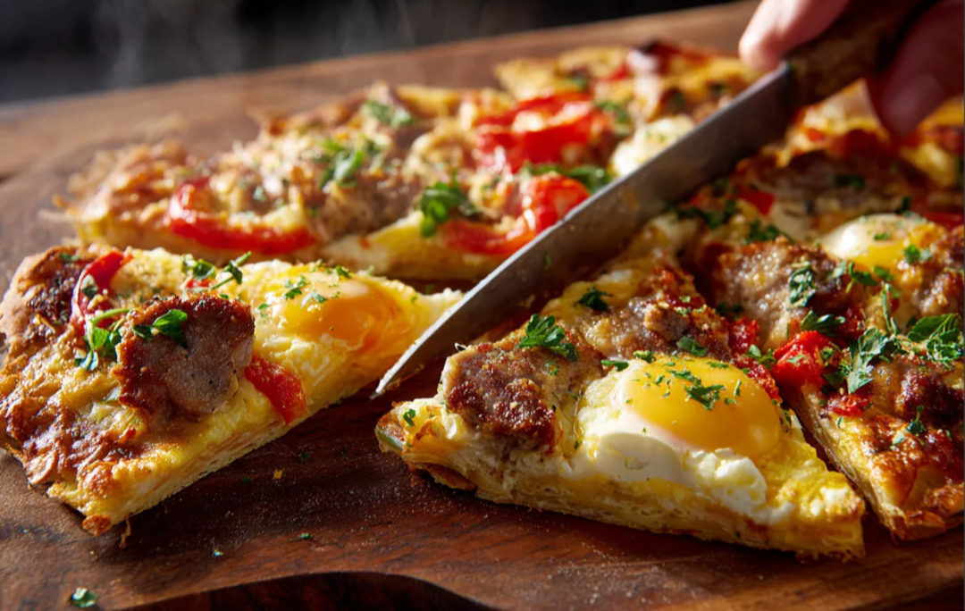 Полученная пицца — это настоящая находка для утреннего угощения. С хрустящим лавашем, тянущимся сыром и нежными овощами она станет любимым блюдом для всей семьи. Подавайте горячей и наслаждайтесь каждым укусом!