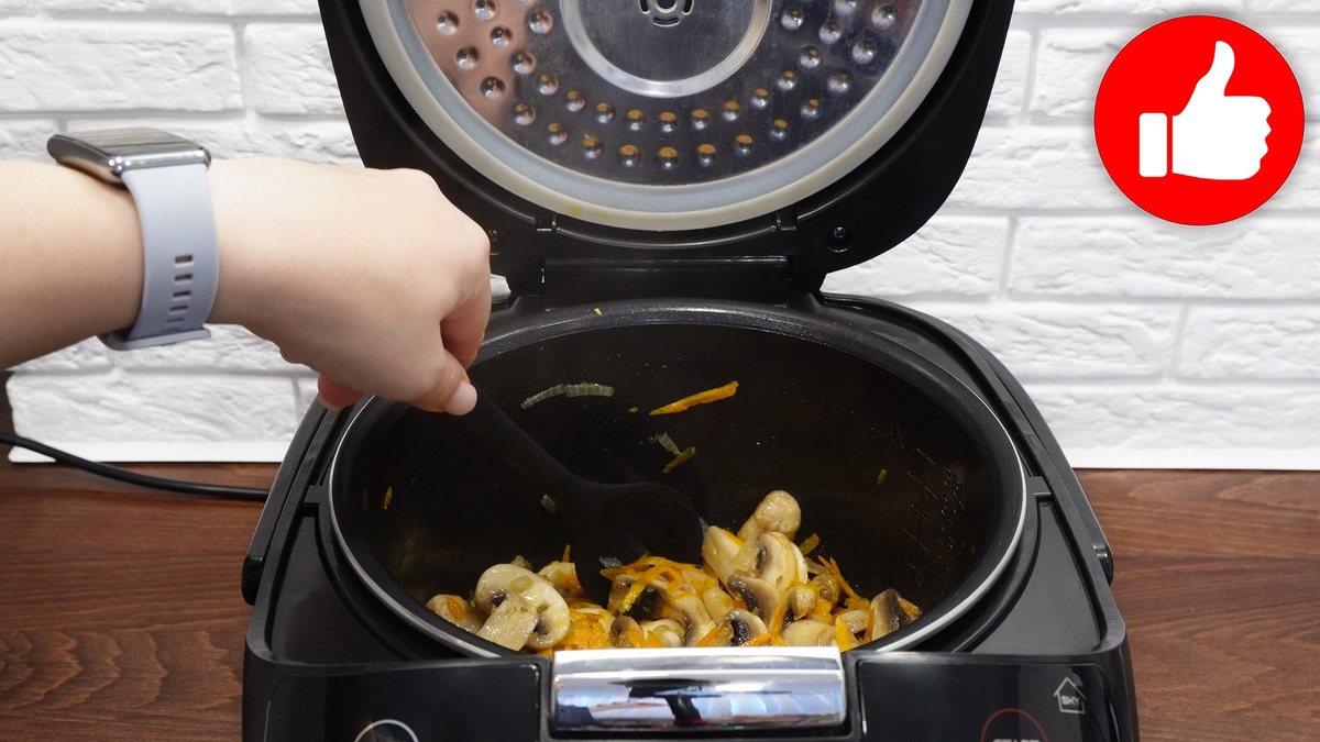 За 3 минуты до завершения жарки закройте крышку мультиварки и дайте блюду настояться. Наслаждайтесь ароматным и сытным блюдом!