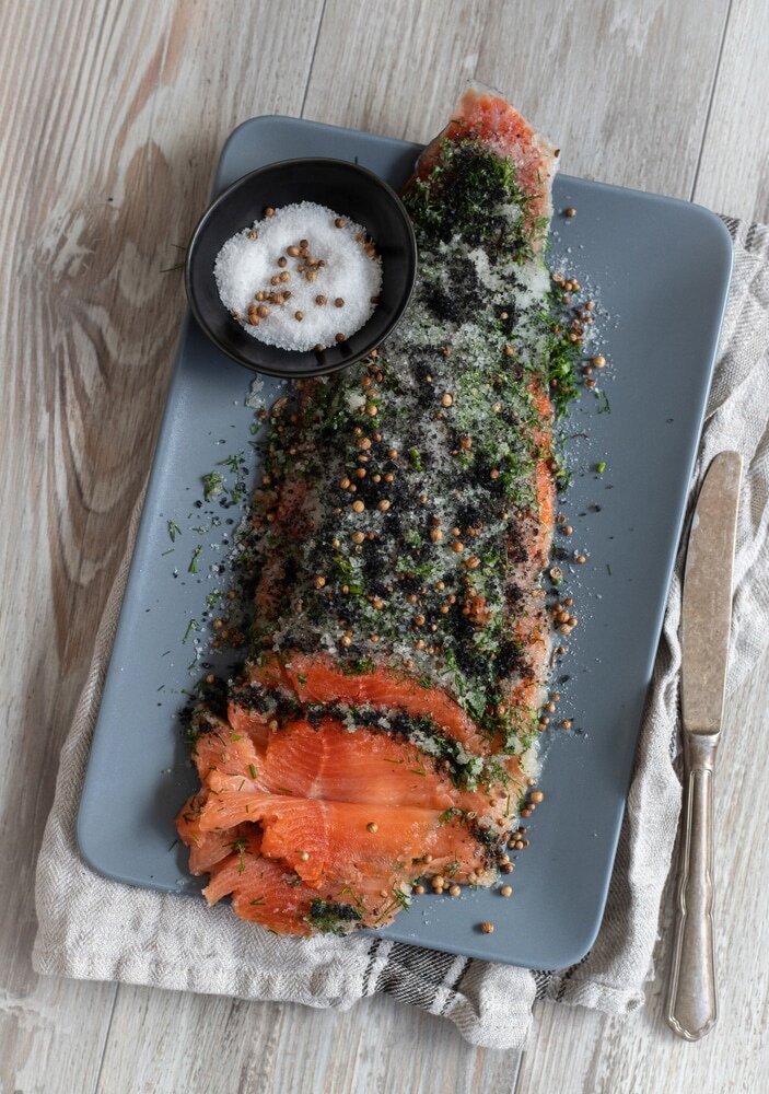 Перед подачей на стол извлеките рыбу из миски и нарежьте её на тонкие ломтики.