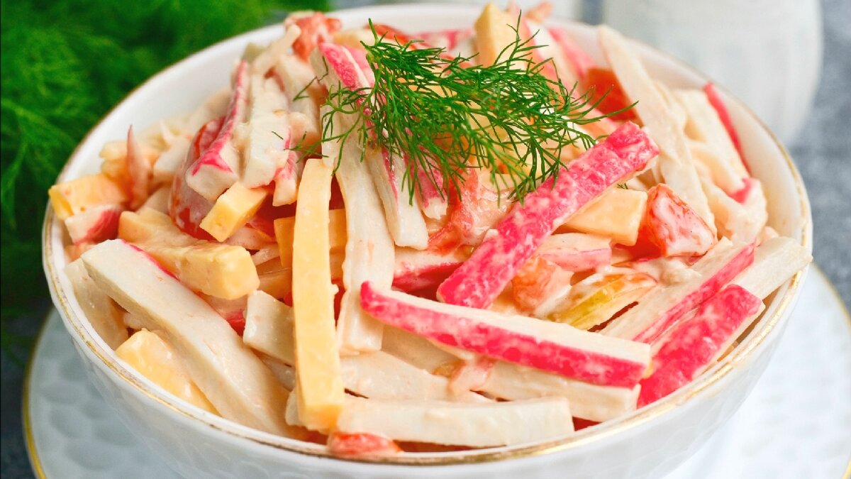 Приготовить салат невероятно просто. Достаточно купить качественные крабовые палочки, разморозить их и нарезать соломкой остальные ингредиенты. Без необходимости варки или тушения — все быстро и эффективно, а результат всегда великолепный.