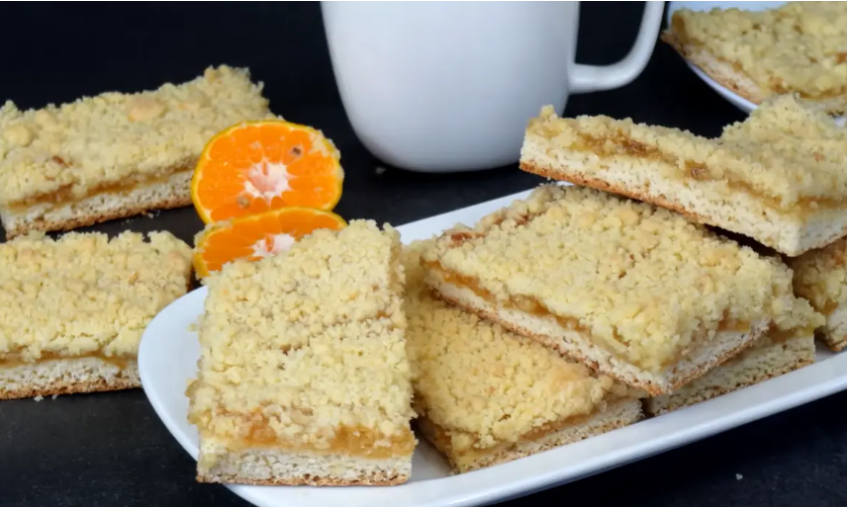 На следующем этапе можно добавить джем или варенье по вашему вкусу. Для верхнего слоя подготовьте крошку, смешав масло, сахар и муку, и равномерно распределите ее на пироге. Выпекайте в разогретой до 180 градусов духовке около 25-30 минут, ориентируясь на свою технику.