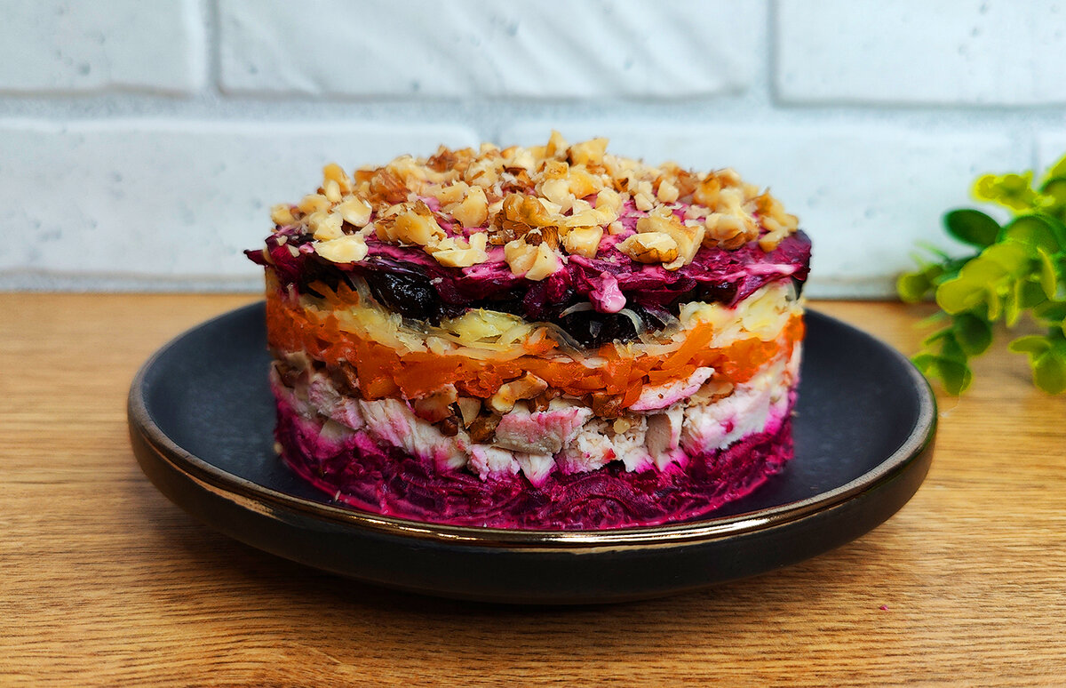 Салат «Чингисхан» подходит не только для новогоднего стола, но и для любого другого застолья. Он отличается интересным сочетанием продуктов, и его сложный, но в то же время простой вкус неизменно привлекает внимание гостей. Каждому слою придается своя роль: сладкая свёкла, нежное куриное филе, орехи и чернослив создают гармонию, а сыр соединяет все компоненты в одну цельную картину.