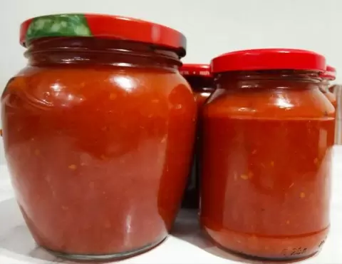 Теперь, когда кетчуп готов, его можно смело хранить в прохладном месте. Этот насыщенный, яркий соус станет дополнительным украшением любого блюда и настоящим спасением для любителей домашних заготовок. Выход получается примерно 1,2 литра. Приятного аппетита!