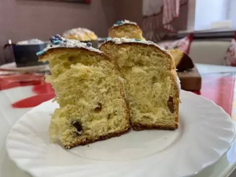 Такой пасхальный кулич станет не только украшением праздничного стола, но и символом радости и единения. Приятного аппетита!