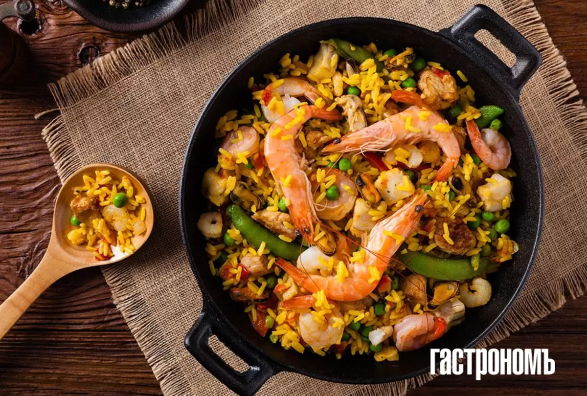 Паэлья с королевскими креветками - это не просто еда, а настоящая кулинарная ассамблея, которая украсит любой праздник. Для её приготовления используется специальная сковорода с широким дном, но если таковой нет, подойдет и обычная глубокая сковорода диаметром 28-30 см. Если получится найти «бомба» - специальный рис для паэльи, смело используйте его, но многие шеф-повара утверждают, что рис для ризотто может дать даже лучший результат.