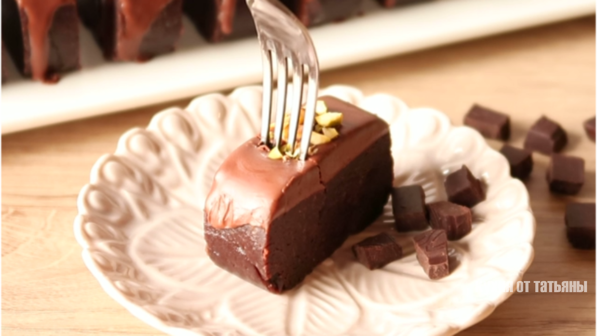 Теперь остается завершающий этап — шоколад! Для этой процедуры будет достаточно половины плитки шоколада, к которому добавляется столовая ложка безароматного растительного масла. А чтобы получить гладкую массу, растопите ингредиенты на водяной бане. После охлаждения просто окуните кусочки пирожных в шоколад и украсьте сверху солеными фисташками. Не забудьте делать это, пока шоколад еще жидкий, иначе орешки могут осыпаться.