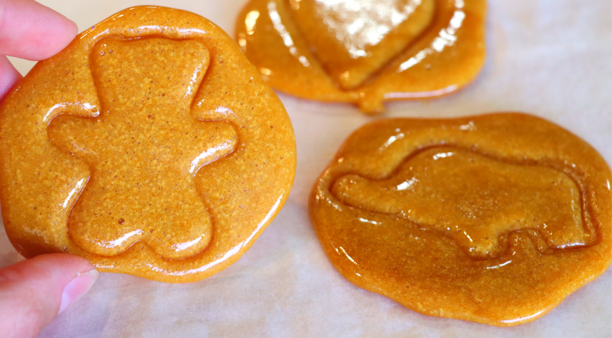 Шаг 4: С помощью металлической формы аккуратно вдавите в карамель, не доходя до конца, чтобы сохранить ее целостность. Дайте окончательно остыть — и сладкие соты готовы к употреблению!