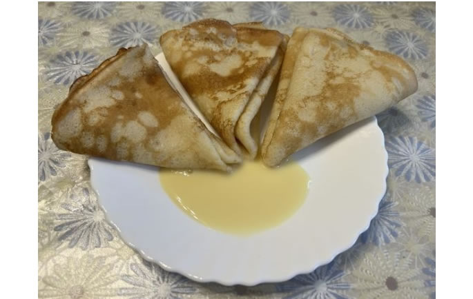 Блины на простокваше — это идеальное сочетание воздушных, пухлых блинов и сладкой начинкой из сгущённого молока. Они могут быть поданы как с густым соусом сверху, так и в виде рулетиков с начинкой. Этот простой и вкусный десерт станет настоящим украшением любого стола.