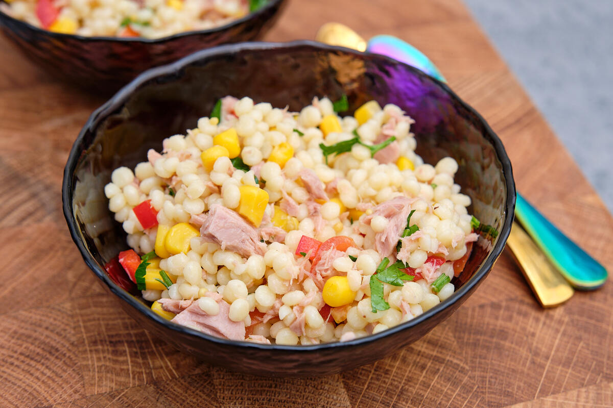 Мечтаете удивить своих близких сочным и насыщенным салатом? Рассмотрите вариант с пастой птитим, тунцом и свежими овощами! Этот аппетитный рецепт подойдет для любого повода: будь то уютный ужин с семьей или дружеская встреча.