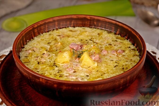 Картофельный суп с ветчиной и горчицей отличается пикантностью благодаря зернистой горчице и деликатным луковым вкусом. Сливки делают блюдо ещё более бархатистым.