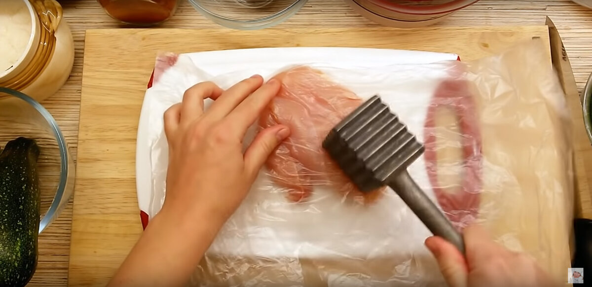Для начала куриные грудки следует поместить в пакет и слегка отбить — это поможет мясу стать более нежным. Далее грудки необходимо посолить, поперчить и приправить молотой сладкой паприкой с обеих сторон.