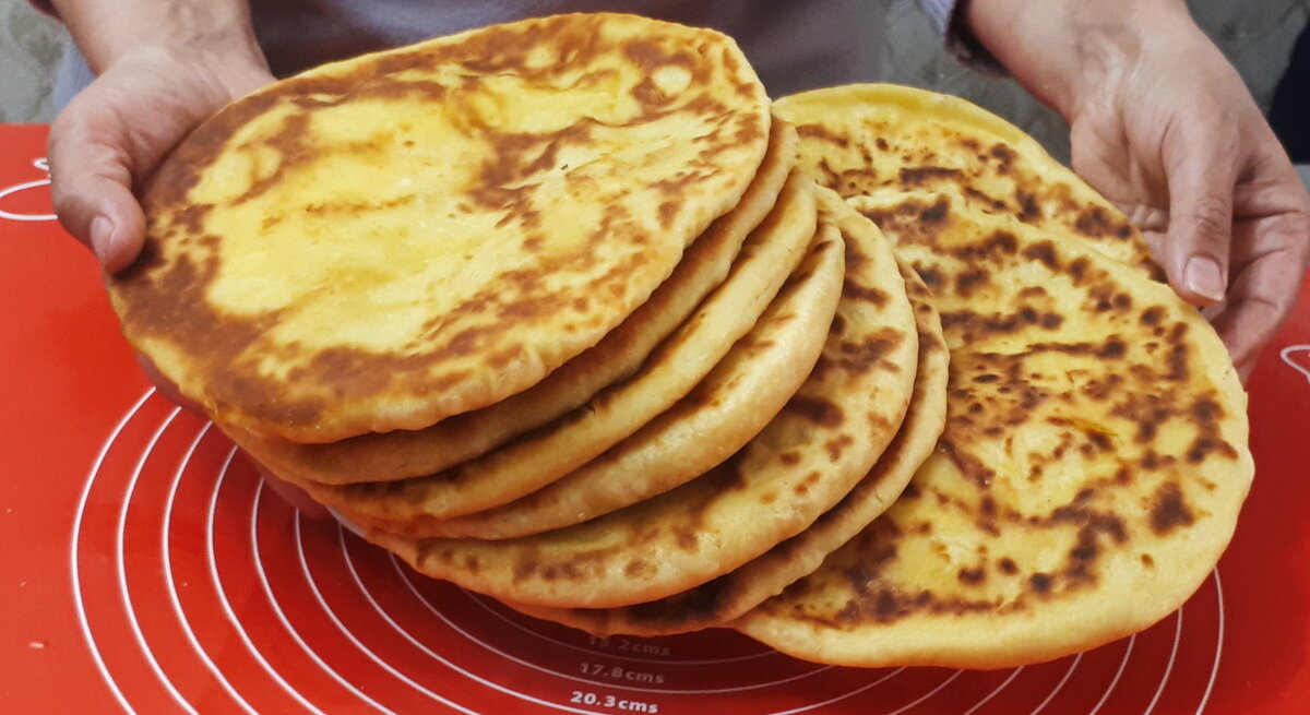 - Затем края теста хорошо соединяются, а лепешку снова раскатывают до диаметра сковороды.
