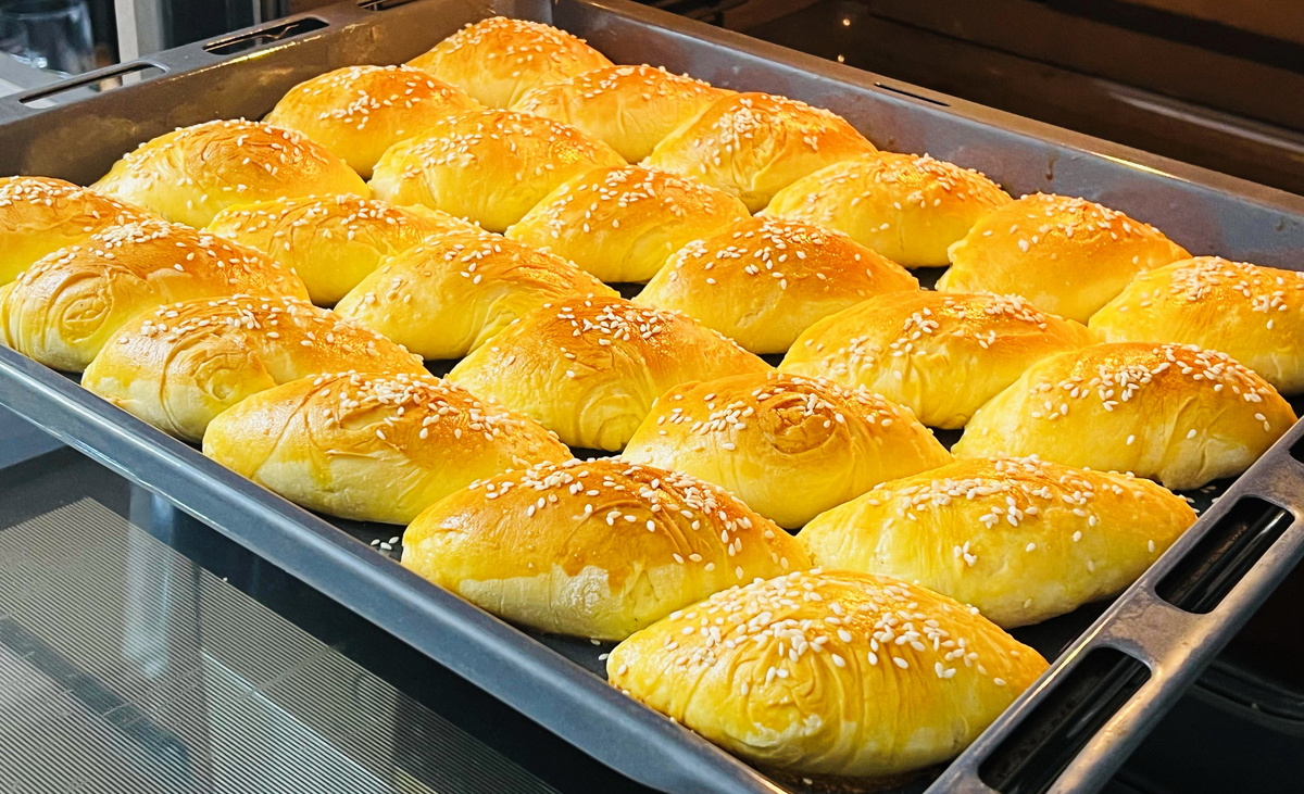 Каждую заготовку наполняют сырной начинкой, как показано в видео-рецепте. Далее их нужно аккуратно уложить на противень, смазать желтком и посыпать кунжутом. Выпекайте в разогретой до 180 градусов духовке в течение 25-30 минут. После чего следует подать на стол, и насладиться этим великолепным угощением.