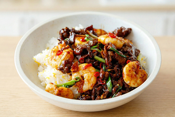 В традиционной китайской кухне предпочитают не смешивать белки: свинина отлично сочетается с фасолью, говядина — с сельдереем, а креветки лучше готовить с луком и чесноком. Поэтому комбинирование говядины и креветок может показаться смелым шагом. У каждого ингредиента свои особенности, которые могут легко привести к тому, что один из них будет готов слишком рано, а другой — совсем еще сырой. Именно это сочетание требует точного подхода к приготовлению, где важна не простая щедрость ингредиентов, а контроль.