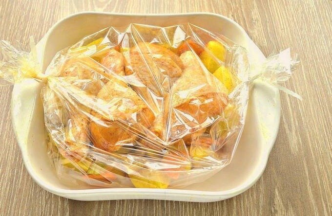 Рукав для запекания представляет собой термоустойчивую пленку. Этот аксессуар можно найти в магазинах в рулонах; нужно лишь отрезать необходимую длину и плотно закрыть края. Некоторым удобно использовать готовые пакеты с застежками — просто помещаете ингредиенты внутрь и герметично закрываете.