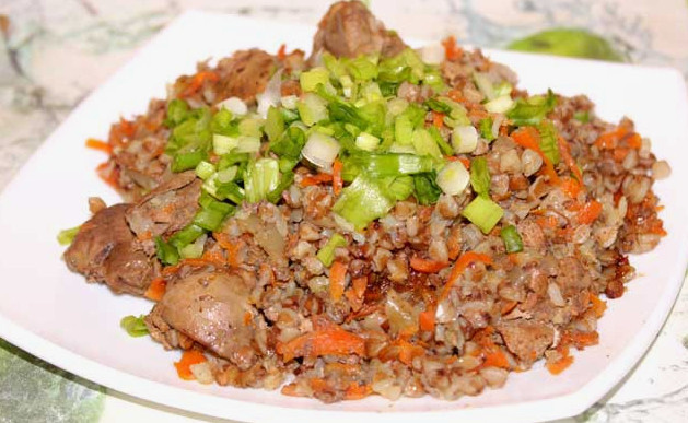 Добавление гречки и печени: