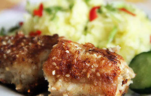 Перед жаркой налима нарезают небольшими кусками толщиной 5-7 см, обтирая их солью и перцем для лучшего вкуса. Лучше всего дать им настояться в холодильнике в течение получаса.