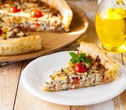 Нежный тарт с мясной начинкой и свежими помидорами