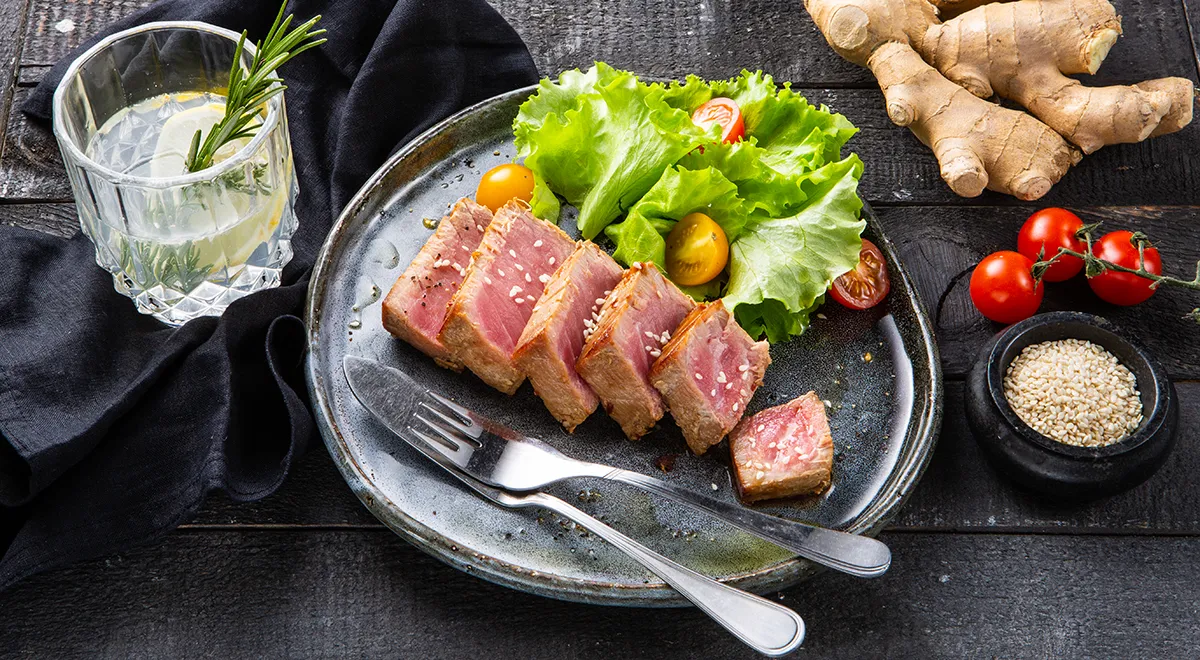 Рождество – это время не только для традиционных блюд, но и для экспериментов на праздничном столе. Стейк из тунца может стать изюминкой вашего меню, привнося легкость, свежесть и неповторимый стиль. Блюдо готовится всего за несколько минут, выглядит очень привлекательно и идеально подходит тем, кто старается придерживаться полезного питания.