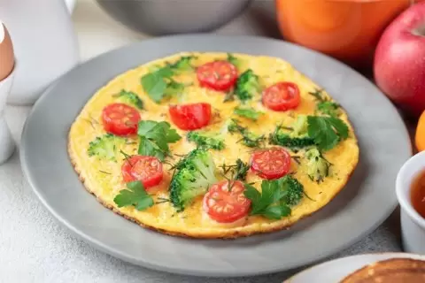Приготовление: Взбейте яйца с молоком, обжарьте овощи на сковороде, затем залейте яичной смесью и готовьте до схватывания. Подавайте всем за стол!