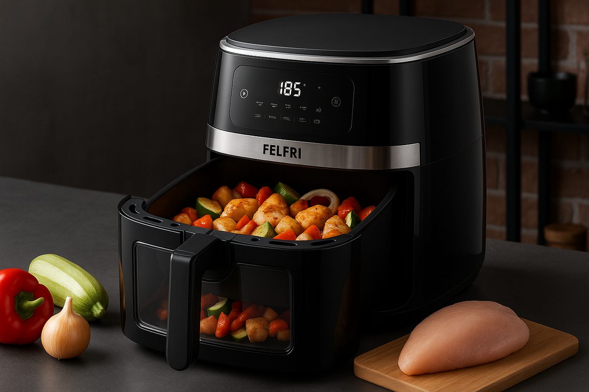 - Меньше жира, больше вкуса. Готовя в аэрогриле, вы минимизируете использование масла, а значит, нет неприятных запахов, как от фритюра.