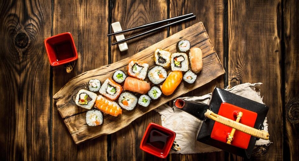 - Рыба и морепродукты, включая суши и роллы